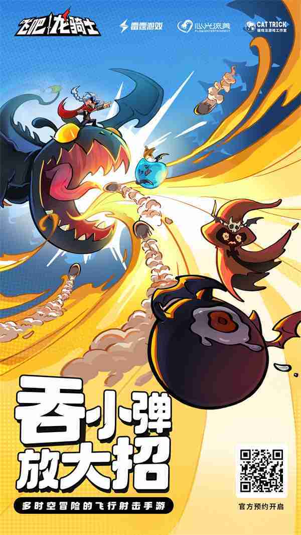 吞小弹,,,,放大招!!!!多时空冒险的飞行射击休闲手游《飞吧龙骑士》官方预约现已开启。。。现在预约还有丰厚的福利等你领!!!!大家可以关注《飞吧龙骑士》官方公众号,,,,了解最新游戏进展。。。。