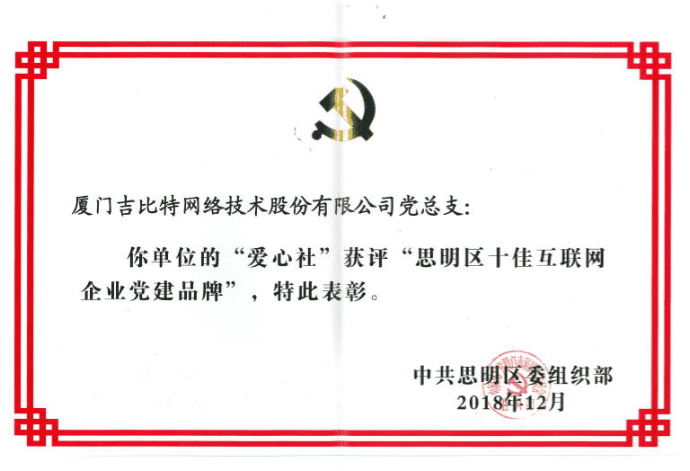 经初审评选、、、网络评选和专家评审等环节,,,"厦门亚星管理网络技术股份有限公司党总支-爱心社" 从全区28个参评党建品牌中脱颖而出,,,获评"思明区十佳互联网企业党建品牌"。。。