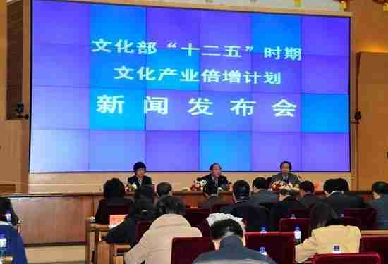 2月28日下午,,,文化部在京召开新闻发布会,,,正式向社会发布《文化部“十二五”时期文化产业倍增计划》,,提出了 “十二五”期间文化部门管理的文化产业增加值年平均现价增长速度高于20%,,2015年比2010年至少翻一番,,实现倍增的奋斗目标。。